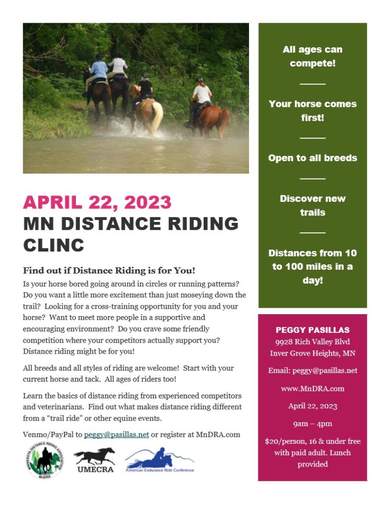 9-10 Distance Riding Events: Novice, Competitive, Driving, Intro/Limited Distance (LD), Endurance)